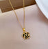Black Enamel Flower Pendant Necklace in Gold with Sparkling Accents
