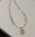 Gold Sunburst Pendant Necklace with Pearls and Crystals